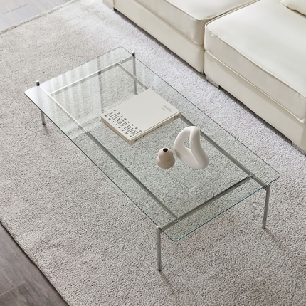 Nordic Style Coffee Table for Living Room, Stainless Steel and Tempered Glass, Minimalist Luxury Design