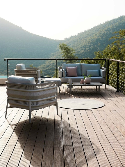 Made from quick-drying cushions and custom-made outdoor fabrics to ensure durability in all outdoor conditions, it features two-way selectable open ends.