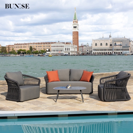 Waterproof UV-Resistant Rope and Rattan Furniture with Coffee Table for Gardens, Balconies, and Villas