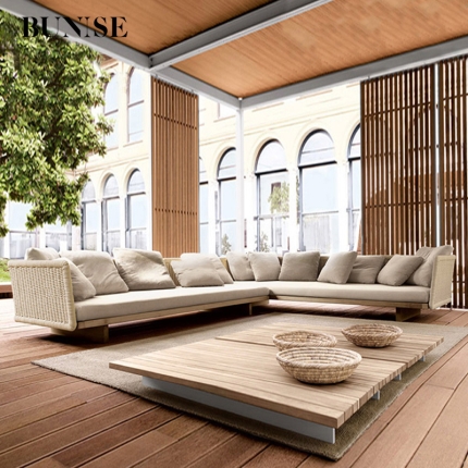 Bunise Outdoor Rattan Sofa, Nordic Style, Rain and Sun Protection, Suitable for Gardens, Balconies, Hotels, Resorts and Villas