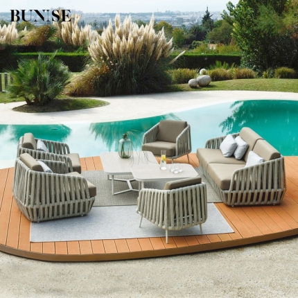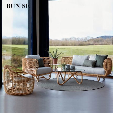 Bunise Outdoor Rattan Sofa Set Nordic Luxury Style Suitable for Gardens, Balconies, Hotels and Villas. Modern Minimalist Design