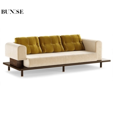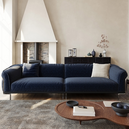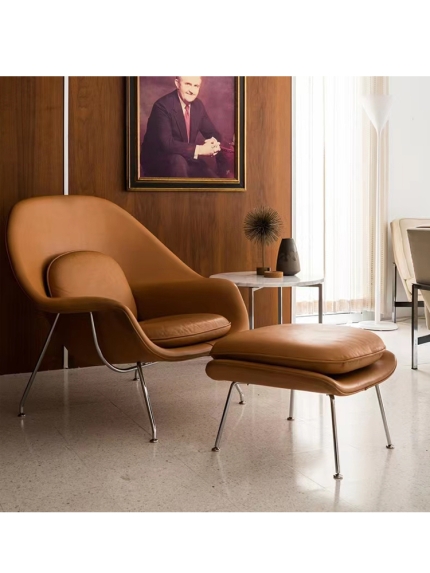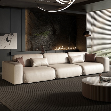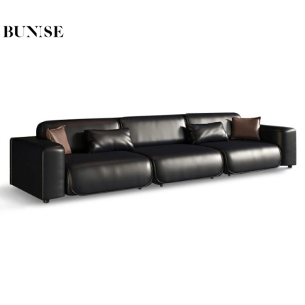 American Vintage Genuine Leather 3-Seater Sofa Solid Ash Wood Frame French Mid-Century Style for Small Living Room or Condo